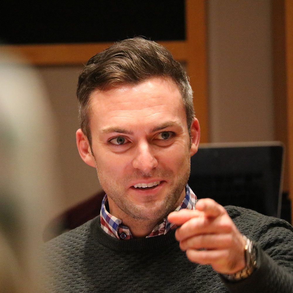 Det hade nu blivit dags för en avslutande medlemspresentation av Justin Hazelgrove. Justin berättade om hur slumpen och stöttande lärare förde in honom på musikeryrket. Hur juristplaner blev dirigentplaner och hur livet